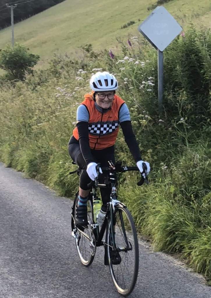 She has done 3 Audaxes before, all of which come with great memories and amusing tales…the tinned peaches in Bellingham, the Alphabet James Bond moment in some McDonalds in Wales, the Dinky’s Diner pint of milk, and the Selkirk v Paris decision… She also did Strykoproven in 2017 and Everested in 2020.